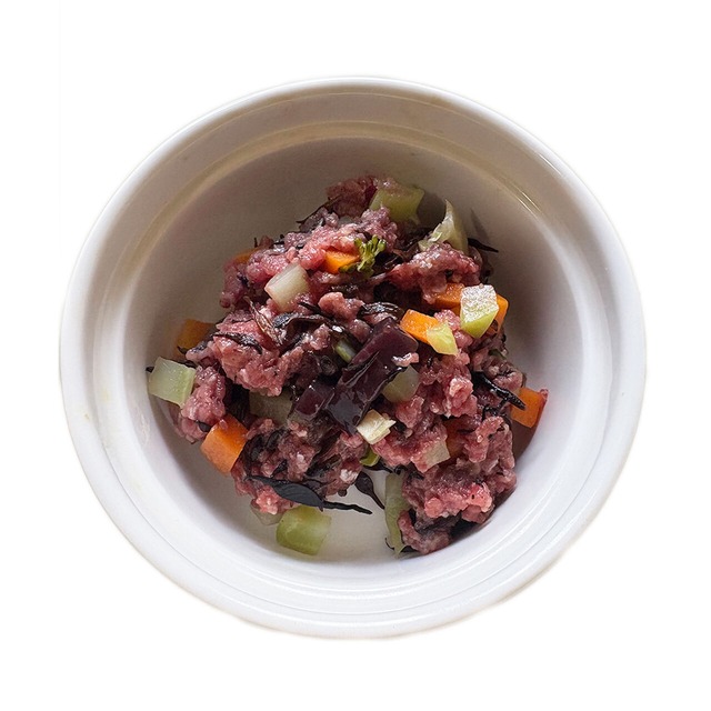 原材料:馬肉ミンチ・馬レバー・にんじん・ブロッコリー・ひじき 馬肉は高たんぱく低カロリー、鉄分がとても豊富。特に馬肉はヘム鉄を多く含み、吸収率が高いのが特徴です。 # 商品説明文 原材料:馬肉、ほうれん草、にんじん、かぼちゃ、ブロッコリー、ひじき # 馬肉 ミックスベジタブル (生)小分けパック (250g×2) 新鮮な馬肉と野菜の絶妙なハーモニーで、愛するペットの健康をしっかりサポート! 馬肉のミックスベジタブルは、厳選された新鮮な馬肉と栄養価の高い野菜を使用し、ペットたちに必要な栄養素をバランス良く提供します。 馬肉には高たんぱくで低脂肪の特徴があり、成長期の子犬や活発な成犬に最適です。また、馬肉には鉄分やビタミンB群が含まれており、エネルギー補給や健康維持に役立ちます。さらに、にんじん、ブロッコリーなどの野菜が豊富に含まれており、ビタミンやミネラルもたっぷり。消化を助ける食物繊維が多いひじきも含まれているため、ペットの腸内環境をサポートします。 新鮮で安全な馬肉と野菜の組み合わせは、食欲をそそる魅力的な一品。口に入れた瞬間に広がる旨味が、愛犬や愛猫の食事タイムをいつもより特別なものにしてくれるでしょう。栄養バランスが整っているため、健康維持や活力向上にも大いに寄与します。 愛するペットとの大切な食事時間を、この馬肉 ミックスベジタブルで充実させてください。自然の恵みを体験させることができる、美味しくて健康的な選択です! #原材料 馬肉ミックスベジタブル 特別な食事タイムは、この馬肉 ミックスベジタブルでさらに楽しみましょう!